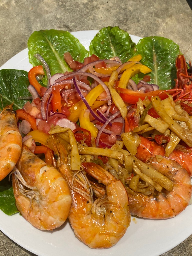 I confess! I am a “prawn addict.” Lol not really but who doesn’t love a fresh and crisp salad with a ‘lil some some on the side?