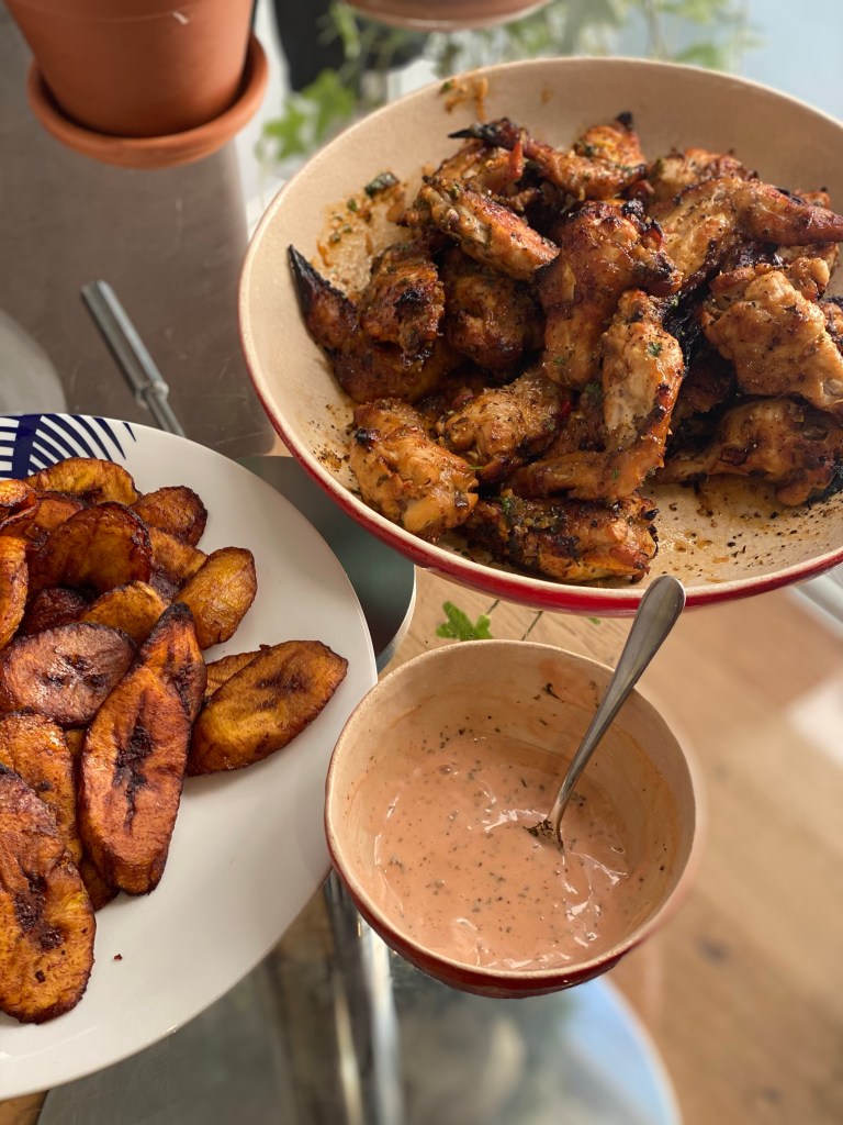 Finger licking could not be this good. A mayo, Ketchup,(siracha), tabasco salt and pepper dip is another way to go. Have this extra dip if you’re eating your chicken wings with friends, fried ripe plantains, chips and don’t forget to make a crunchy salad 🥰. Veg is dope!!!