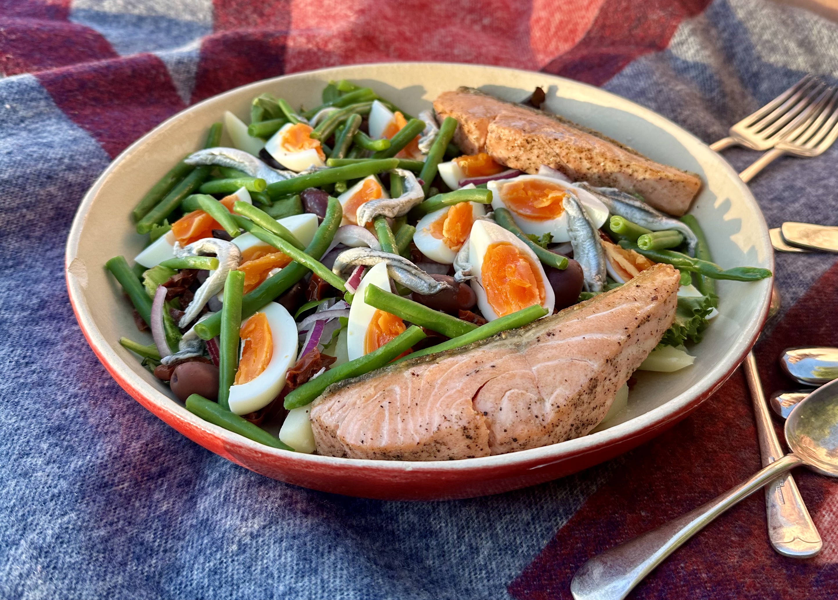 One dish that always takes me back is my adapted version of Salade Niçoise. While purists might raise an eyebrow at my salmon variation (traditionally, it’s made with tuna), this dish has become my personal testimony to how recipes evolve with our journeys.
