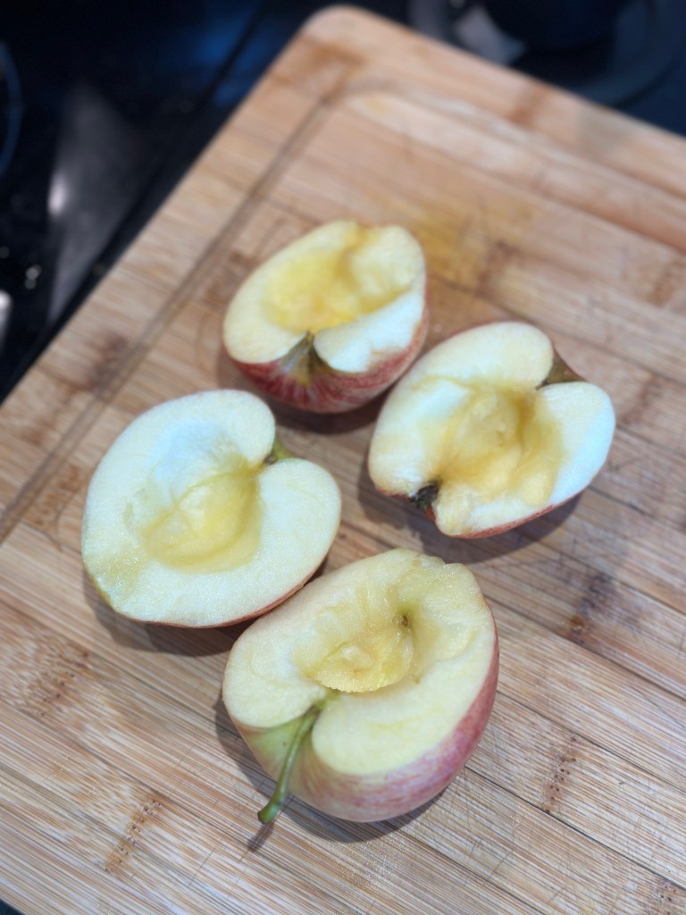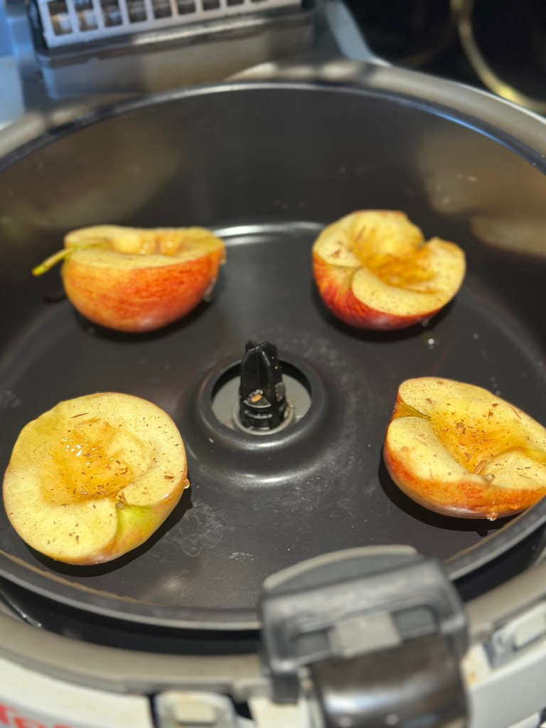 Anyway, air fryers came up in conversation, and I remembered seeing this apple dessert on Instagram from @oyinda_fitness. My daughter – currently finding clever new ways to hustle sweets out of me – was the perfect excuse. Our usual routine goes like this: she bargains for sweets, I lecture her about teeth, and we both end up laughing. After she’s given me the most dramatic, over-the-top teen TV show reaction of sadness, I tease laughter out of her. What a workout! This time, I gave in and decided to make us both a sweet treat.