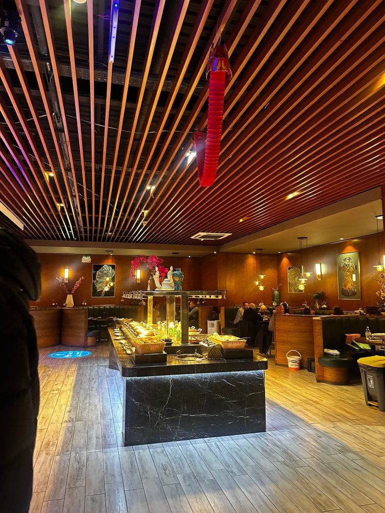 Full disclosure: my daughter and I made a straight beeline for the sushi station and barely left it. But what a station. The sushi comes in these elegant little Chinese-style spoon bowls; such thoughtful presentation that even a buffet feels considered and special.