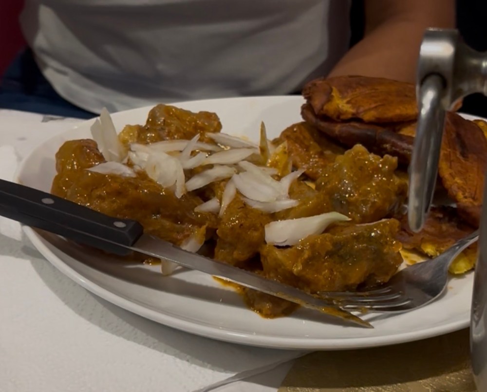 Ms. Bride-to-be ordered the tendon with plantain tapée (braised beef tendon with smashed fried plantains). If you know beef tendon, you know it’s a gamble. But when it’s done right? It transforms into a gelatinous, collagen-rich perfection. She took one bite, eyes wide: “It’s melting! A taste of heaven just fell from the sky into my mouth!”